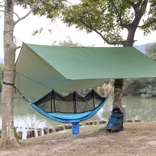 Hängmatta för vandring med myggnät och tarp.