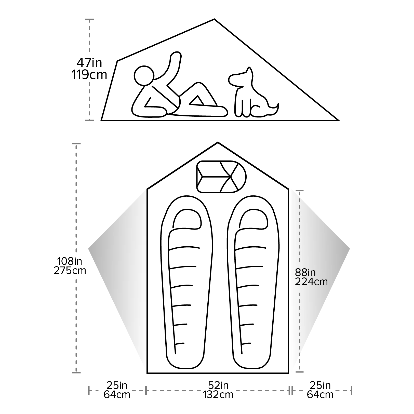String Ridge VST ger dig det bästa av två världar: viktstatistik som du bara kan få med ett vandringsstavsskydd, kombinerat med en stabil och pålitlig design. Extra 0,5-storlek skapar ett dedikerat skyddat utrymme för din utrustning eller en fyrbent vän. Innovativ, externt stödd asymmetrisk arkitektur ger ett rymligt skydd med gott om plats att lägga ut din utrustning och göra dig redo för nästa dags äventyr.